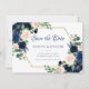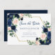 Reserva La Fecha Moda florece | Azul marino y floral rosa Rubor
