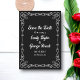 Esta elegante boda en blanco y negro, salvo la invitación de cita, es perfecta para un boda moderno. El diseño es sencillo y presenta un bonito marco floral con una tipografía blanca elegante sobre un fondo negro.