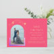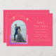Moda mística Fuchsia Estrella de Sol Rosa Astronomía Espacial Estrella de la Luna Astronomía Galaxia cósmica Celestial Save The Dates presenta un sol morado y dorado, luna y estrellas enmarcado en un fondo rosa fucsia. Adentro está tu foto favorita y tu personalizado guarda la información de la fecha. Personalice editando el texto en los cuadros de texto. Diseñado por ©Evco Studio www.zazzle.com/store/evcostudio