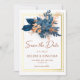 Con una exquisita mezcla de tonos de óxido índigo y delicadas flores, esta impresionante y moderna Moda acuarela Floral Elegante Boda Save the Date exuda elegancia y encanto intemporal. Perfecto para una boda de primavera, verano o otoño, su escritura caligráfica y elementos botánicos le añaden un toque de belleza natural y encanto rústico a su día especial. Diseñada con un toque de boho y enmarcada dentro de un marco dorado para ese toque de sofisticación, esta elegante tarjeta impresionará a sus destinatarios. ¡Pídelo ahora y empieza a contar los días a tu boda soñado!