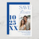 Reserva La Fecha Moda moderna guión simple negrita boda azul blanco