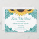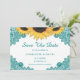 La elegante boda de girasoles rústicos verde azulados salva las tarjetas de dátiles con flores de girasol y un verde azulado encaje floral. Los artículos disponibles para complementar esta verde azulada boda rústica de moda ahorran las tarjetas de fecha.
