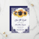 Boda de girasol rústico color azul marino personalizado salva las tarjetas de cita con girasoles, luces de cuerda y encaje floral azul. Los artículos disponibles para complementar esta boda rústica de moda azul marino ahorran las tarjetas de fecha.