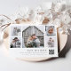 Esta elegante boda de estilo rústico, salvo la tarjeta de fecha, incluye un collage de cinco fotos con un sencillo fondo blanco y un texto clásico, gris oscuro. También hay un escaneado código QR para que los huéspedes puedan visitar el sitio web de su boda para obtener más detalles o el RSVP. ¡La forma minimalista perfecta para que tus amigos y familia sepan que te estás casando!