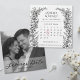 Announce your special day with timeless charm and modern flair. This elegant save-the-date card features a black-and-white floral border framing a minimalist calendar layout, with your wedding date highlighted in a soft red heart for instant clarity. The top showcases your names and joyful announcement, while the bottom includes location details and a note that a formal invitation will follow.