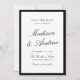Announce your wedding with this elegant black and white photo save the date card, featuring a classic black border and a refined typographic layout. The couple’s names are displayed in graceful calligraphy script, paired with timeless serif lettering for the date, venue, and location, creating a balanced and sophisticated look. The back showcases your engagement photo framed with a matching black border for a cohesive two-sided design. Ideal for formal weddings, black tie ceremonies, classic and old money style weddings, as well as estate and ballroom venues, this personalized save the date coordinates beautifully with black and white wedding invitation collections and offers a stylish way to share your wedding date.