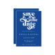 With a simple and modern design and retro typography, this elegant save-the-date announcement fits any wedding theme. It features a modern cobalt blue background and minimalist and simple typography.