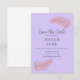A charming save-the-date invitation features a Violet background framed by delicate leafy details for a soft, elegant touch. Stylish, refined text highlights the occasion, with customizable spaces for names, date, and address. Combining classic design with modern convenience.
