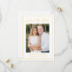 Announce your wedding date with this modern photo wedding save the date featuring yellow script lettering and a matching border that frames the design. “Save the Date” is displayed at the top in calligraphy, with your vertical photo centered and your names, wedding date, and location shown below in clean, easy-to-read lettering. Perfect for spring and summer weddings, outdoor weddings, and garden ceremonies. The back is blank, allowing space for a wedding website and additional photos.