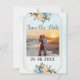 Muestre su estilo con nuestro Ahorre la Fecha de Boda con Marco de Oro y Acuarela Floral Blanco. Un cautivador follaje y vegetación están diseñados con delicadas acuarelas florales, creando un marco verde para los detalles de su boda en la parte posterior de este Ahorre la Fecha.