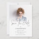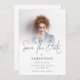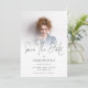 Moderno Partido de Graduación para Superposición de Fotografías Save The Date está en un guión elegante. Reemplace la foto de ejemplo con su propio favorito y personalice el resto del texto. Disponible digitalmente e impreso.