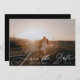 Hermosa caligrafía con letras en blanco para sobreponer tu foto ahorra la tarjeta de cita. Moderno foto simple en blanco y negro La boda salva la fecha.