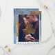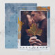 Esta es una plantilla de foto moderna y única de save the date, que incluye espacio para la foto de la pareja favorita bajo una plantilla única de "save the date" con detalles de acuarela azules y dorados. Una excelente manera de hacer saber a su familia y amigos sobre su próxima celebración de boda. Personalice con sus nombres y detalles de la boda.