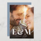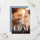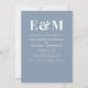 Boda azul polvorienta moderna salve la invitación de fecha con tu foto con las iniciales de tu monograma en una tipografía blanca grande, audaz y elegante. Personalice sus datos guardados en la parte posterior en una tipografía blanca simple.