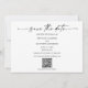 Moderna, Minimalista pero elegante Caligrafía Ink Pen Script 4 Boda de fotografía Invitación de compromiso Guardar la tarjeta de fecha con la dirección del sitio web del boda de código QR al dorso de la tarjeta