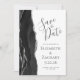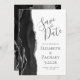 El borde izquierdo de esta elegante y moderna boda, salvo la tarjeta de fecha, cuenta con un borde de batida de color negro con falso purpurina plateado. El texto del personalizable combina la escritura a mano de carbón gris, el copperplate y las fuentes cursivas en un fondo blanco. El reverso presenta un diseño de ágata negro y plateado a juego.