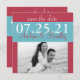 El texto y la foto de compromiso en esta tarjeta moderna para guardar la fecha de la boda con foto en azul acuatico (turquesa, azul huevo de petirrojo) y rojo es totalmente personalizable. Puede cambiar la mayor parte del texto y la foto de compromiso utilizando la opción de personalizar. Para cambiar el resto del texto o hacer cambios más extensos en la tarjeta, incluyendo cambiar la fuente, el color de la fuente o la ubicación del texto, use la opción personalizar. También puede cambiar el tipo de papel en las opciones de invitación. Esta es una bonita tarjeta para guardar la fecha de una boda con un esquema de color azul acuatico y rojo.