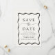 Anuncie su próximo boda con estilo con nuestra boda Modern Wavy Frame, ¡salve las fechas! El diseño presenta sus nombres y detalles bodas enmarcados por un marco ondulado negro que contrasta con un fondo de color crema clara. Esta exquisita mezcla de diseño moderno y retro garantiza que tu fecha no es meramente un recordatorio de tu próxima celebración, sino un querido aguijón que captura la esencia de tu historia de amor.