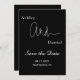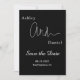 Esta elegante boda en blanco y negro le permite pasar la fecha y es perfecta para un boda moderno. el diseño sencillo presenta una elegante caligrafía blanca sobre un fondo negro.
