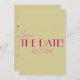 Esta moderna y retro funky Boda minimalista Guardar la plantilla de fecha es genial para usted. Si está buscando una boda bonito, elegante y fácil de personalizar Guardar la plantilla de fecha. Una simple y elegante boda de escritura verde y rosa ahorra la fecha. Lo que presenta magenta rojo mínimo salva la tipografía de fecha en negrita sobre fondo de boho verde de wasabi liso. Agarra esta elegante boda, ahorra la fecha y haz que tus invitaciones estén realmente comprometidas.