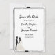 Esta elegante tarjeta de fecha en blanco y negro es perfecta para un boda moderno. El diseño es sencillo y cuenta con una elegante caligrafía negra, un marco negro de moda y un ilustracion de novios sobre un fondo blanco y limpio.