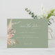 Un elegante y moderno boho floral diseño verde con un fantástico y moderno guión Save The Date hace la invitación boda ideal a la familia y amigos. Fácilmente personalizar con sus datos personales de su elección. Vea las invitaciones de boda All In One coincidentes con tarjetas RSVP, en nuestra colección anterior.