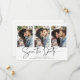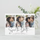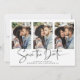 Moderno manuscrito Guardar la tarjeta fotográfica de fecha múltiple en un tipo de letra elegante que evoca un ambiente romántico escrito a mano. Diseñado para usar tres de tus fotos favoritas para una personalización adicional. Añade fácilmente tus nombres y fechas para un diseño realmente personalizado.