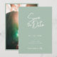 Reserva La Fecha Moderno Minimal Verde Salvia Letra Foto Boda