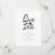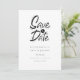 Esta tarjeta de save the date minimalista presenta un elegante save the date sobre tus detalles en tipografía elegante.