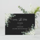 Deje que sus invitados sepan que deben marcar sus calendarios con nuestro aviso de fecha de Modern Emerald Greenery. Con una hermosa mezcla de acuarela de hojas de eucalipto y delicadas flores de jazmín, este diseño complementa perfectamente un tema de boda de vegetación o acuarela. Su elegancia fresca y botánica prepara el escenario para una celebración llena de encanto natural y romance.