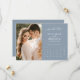 Moderno y elegante calendario de fotos Dusty Blue Wedding Salva la fecha. Personalice fácilmente reemplazando cada información. Por favor, suba un retrato/foto vertical. Mueva el círculo haciendo clic en el Personalizar de vínculos. Asegúrese de comprobar la previsualización antes de añadir al carrito. (Ejemplo de foto de Jonathan Borba de Pexels)