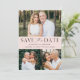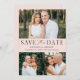 Elegante, multifoto guardar la fecha con "Save the Date" mostrada con letras negras con un fondo rosa claro y de color rosa. Personalice el QR moderno para guardar la tarjeta de fecha con 3 de sus fotos favoritas, sus nombres, fecha de boda y ubicación del boda. El código de QR del personalizado se revierte al guardar la fecha con el sitio web del boda y el texto del personalizado.