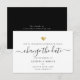 Esta elegante tarjeta Change the Date (Guardar la fecha) brilla con simplicidad. Tipografía moderna, caligrafía magnífica y acentuado por un corazón dulce con oro impreso. Perfecto para aquellos momentos en los que circunstancias imprevistas exigen un cambio de fecha para el día de su boda.
