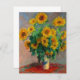 Tarjeta con la pintura al óleo de Claude Monet Bouquet of Sunflowers (1881). Hermosos girasoles en un jarrón azul sobre una mesa roja. Un gran regalo para los aficionados al impresionismo y al arte francés.