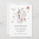 Lilac - color de agua púrpura y rosa rubor Francia mapa de bodas salva la tarjeta de fecha con famosos íconos de París. Todos los elementos son totalmente personalizables. Si sus nombres parecen un poco desenfocados cuando se escriben, "Haga clic en el personalizar más adelante" (el enlace azul en la parte inferior de "Personalice esta plantilla") para ajustarlos fácilmente en el área de diseño.