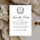 Reserva La Fecha Monograma Escudo de leafy formales Boda blanco neg