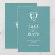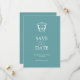 Anuncie su compromiso con esta moderna tarjeta de "save the date". Cuenta con una mezcla de tipografía clásica y de escritura en blanco sobre un fondo turquesa sólido. Ingrese el monograma de la novia y el novio en el centro de un escudo. Todos los colores se pueden personalizar para adaptarse a la paleta de colores de su boda. Utilice los campos del modelo para personalizar con su nombre y fecha de boda. Elija entre una variedad de papeles de alta calidad. Mi favorito para esta es perla con brillo. Mezcle y combine con muchos de mis diseños para crear su tema de boda personalizado. Un diseño minimalista y elegante para bodas y anuncios de compromiso. Para ver el conjunto de papelería de boda a juego visite www.zazzle.com/dotellabelle
