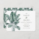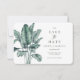 Tropical save the date card presenta la planta de Monstera en la parte delantera y el patrón de la hoja de Monstera en la parte posterior con monograma y fecha boda. Perfecto para bodas de verano o de destino.