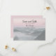 Tarjetas de boda de montañas cubiertas de niebla de color rosa y gris suave para salvar la fecha sin foto. Personalice con su propio texto. Contáctenos para obtener ayuda con la personalización o para solicitar productos coincidentes.