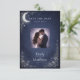 Announce your wedding with a stunning celestial woodland save the date card. Featuring a luminous silver crescent moon, engraving-style vines, and subtle star accents over a midnight navy backdrop, this design offers a romantic and elegant way to share your wedding date. Perfect for evening weddings and forest-inspired celebrations.