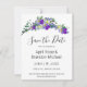 Un diseño elegante y vintage con eucaliptos, lavanda y violetas violetas pintadas en una romántica acuarela. tarjetas de reserva la fecha. Para empezar a cambiar nombres y detalles de eventos, haga clic en "Personalizar esta plantilla" y edite la redacción en los cuadros de plantilla. Para acceder a las herramientas de edición más avanzadas, desplácese hasta "Haga clic en el personalizar más adelante". Una vez que esté en la herramienta de diseño de Zazzle, puede editar fuentes, ubicación, color, tamaño y más! Parte de una suite coordinada. Vea la colección completa aquí: https://www.zazzle.com/collections/lavender_eucalyptus_and_purple_violet_collection-119664202013606728