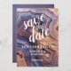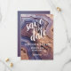 Moderno salve la tarjeta de fecha con un diseño púrpura / violeta, geode / agate con acentos de Relieve metalizado oro rosa. Personalizado con los detalles del evento.