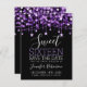 Morado y dulce negro 16 cumpleaños Sparkly String Lights "Save the Date" plantilla de invitación.