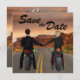 Esta invitación única de Save the Date incluye hermosos paisajes de carreteras rocosas con un muchacho y una pareja de chicas en motocicletas tomados de la mano. El niño tiene el pelo castaño y el chica tiene el pelo rubio. Hay otras combinaciones de colores para el pelo disponibles bajo petición. ¡Perfecto para una pareja de ciclistas! Personalizar fácilmente esta opción Guardar la fecha con todos los detalles para su boda.