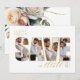 Esta suite boda, con sus flores exuberantes y dramáticas, de color blanco cremoso a rosa rubor, sus toques dorados y sus hermosos fondos acuáticos, crea un ambiente elegante y romántico, que da un toque de lo que los clientes pueden esperar en su gran día. Esta tarjeta única "Save the Date" proporciona una plantilla para agregar fácilmente cuatro de las mejores fotos que se mostrarán en el fondo de la inscripción. Un texto de guión floral de esquina y dorado llamativo añaden a la elegancia general de esta tarjeta. Busque ID1022 para ver todos los productos de este conjunto de bodas.