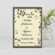 Hermoso diseño de boda con símbolos musicales, hojas y silueta de mariposa. Un panel de madera colorido y un diseño de fondo texturizado. Esto es ideal para bodas, aniversarios y ocasiones especiales. Personalice esta plantilla con su información. Edítela para más cambios.