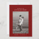 La tarjeta de anuncio de la boda presenta una sola foto centrada de la pareja. Sobre la foto, sus nombres se muestran en una fuente limpia y moderna. Abajo, la fecha y el lugar de la boda están escritos de manera ordenada. El diseño es minimalista con mucho espacio en blanco, centrándose en la simplicidad y la elegancia.