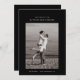 La tarjeta fotográfica save-the-date incluye una sola foto centrada de la pareja. Encima de la foto, sus nombres se muestran en una fuente limpia y moderna. Debajo, la fecha y ubicación del boda están escritas cuidadosamente. El diseño es minimalista, con mucho espacio en blanco, sobre todo en simplicidad y elegancia.