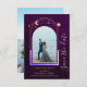 El místico Rainbow Deep Plum Sun Moon Star Space Save The Dates presenta un sol, luna y estrellas de color arcoiris con un fondo de ciruela profundo. Adentro está tu foto favorita y tu personalizado guarda la información de la fecha. Añadir una foto adicional al reverso. Personalice editando el texto en los cuadros de texto. Diseñado por ©Evco Studio www.zazzle.com/store/evcostudio