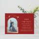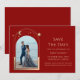 Mystical Dark Red Gold Sun Moon Star Space Astronomía Cosmic Galaxy Celestial Save The Dates presenta un sol dorado, luna y estrellas enmarcadas en un fondo rojo oscuro. Adentro está tu foto favorita y tu personalizado guarda la información de la fecha. Personalice editando el texto en los cuadros de texto. Diseñado por ©Evco Studio www.zazzle.com/store/evcostudio